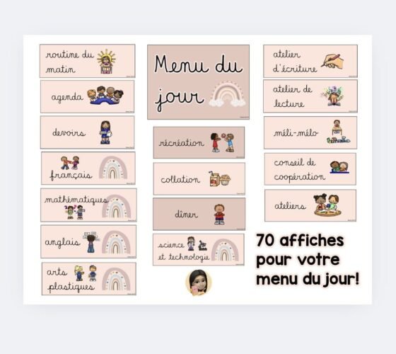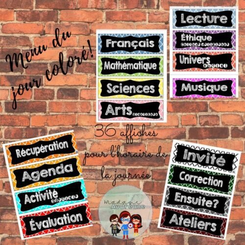 Elles vous permettront de mettre une touche de couleur à votre classe tout en présentant un visuel du cycle du jour.