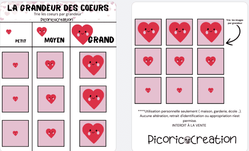 *Classe en ordre de grandeur les coeurs ( petit-moyen-grand)