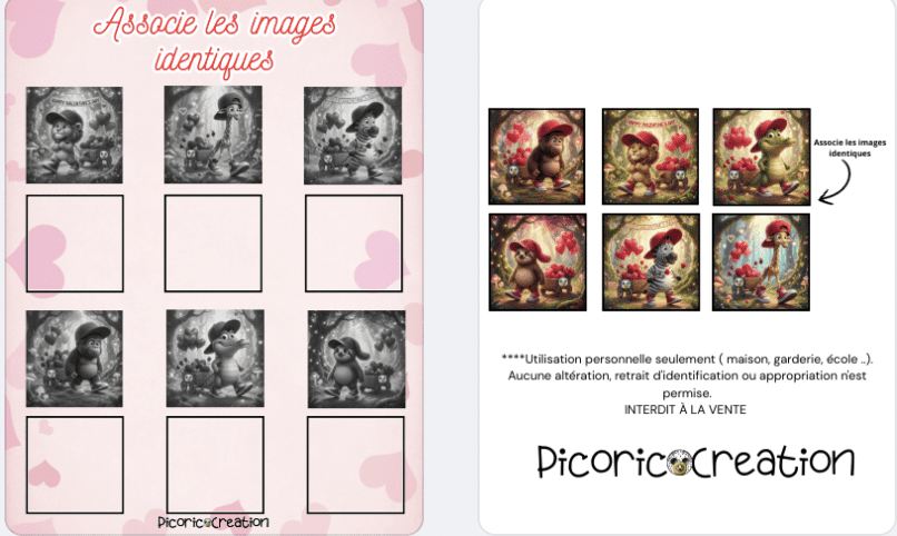 *Jeu de mémoire/association d’une photo que l’enfant doit associer avec son selfie qui est en Très gros plan.