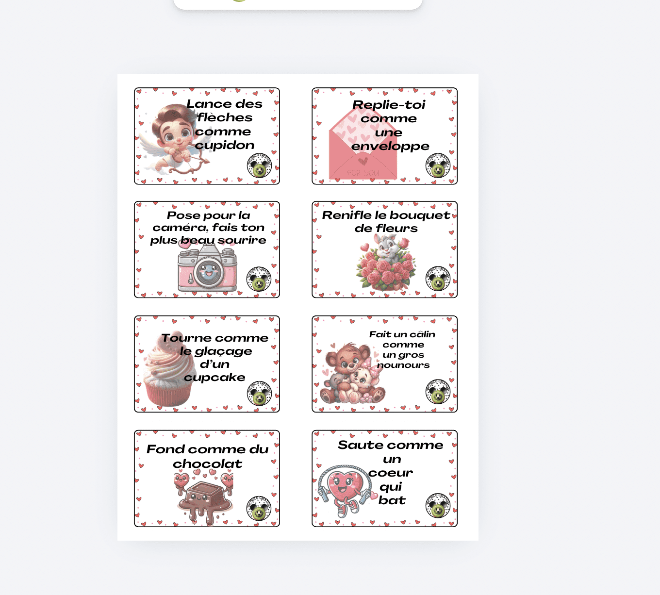 *8 cartes éclairs pour faire bouger les enfants sous le thème de la Saint-Valentin