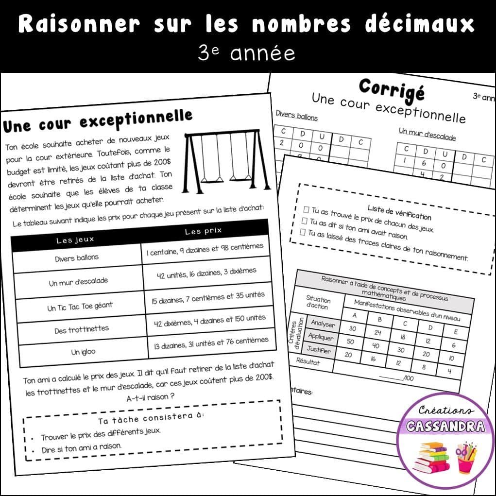 Voici un ensemble de cinq situations d’application pour les élèves du 2e cycle. Chaque raisonner contient deux versions, soit une pour les élèves de 3e année et une pour les élèves de 4e année.